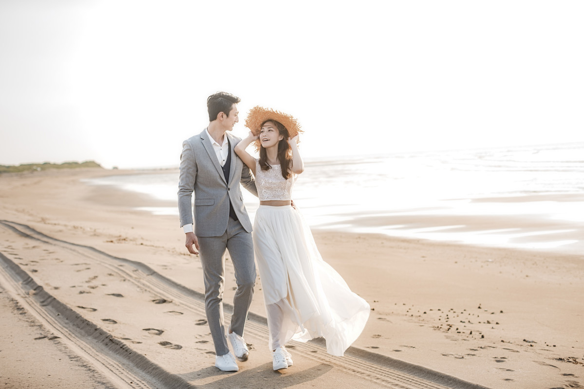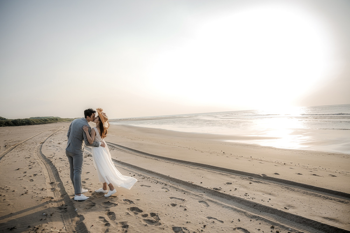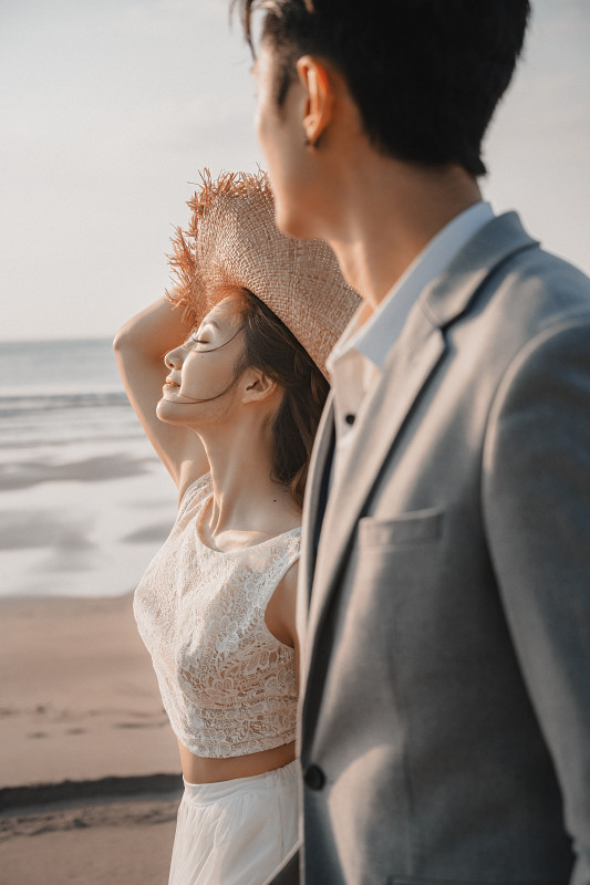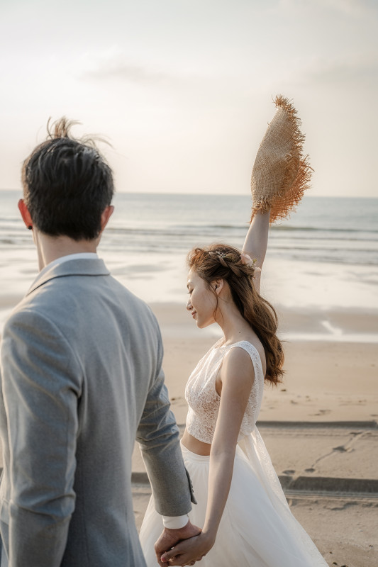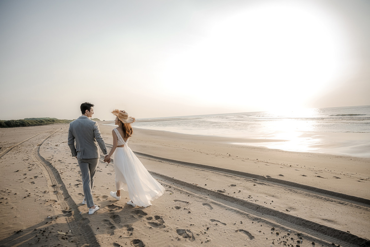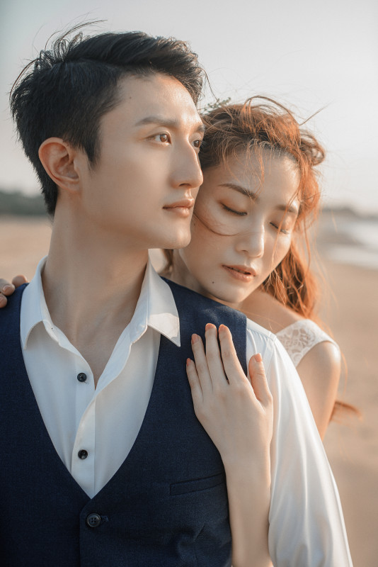 這組漫步沙灘的海邊婚紗照宛如浪漫電影場景般夢幻。夕陽的餘暉照映在沙灘上,新人牽手、擁抱、自在地漫步在沙灘上,享受著這一刻的甜蜜時光。輕婚紗隨風飄揚,柔和的陽光勾勒出曼妙的身影,散發出一種詩意的浪漫。每一步都在沙灘上刻畫出了愛情的足跡,將那份心靈深處的悸動定格成最浪漫的海邊婚紗照。