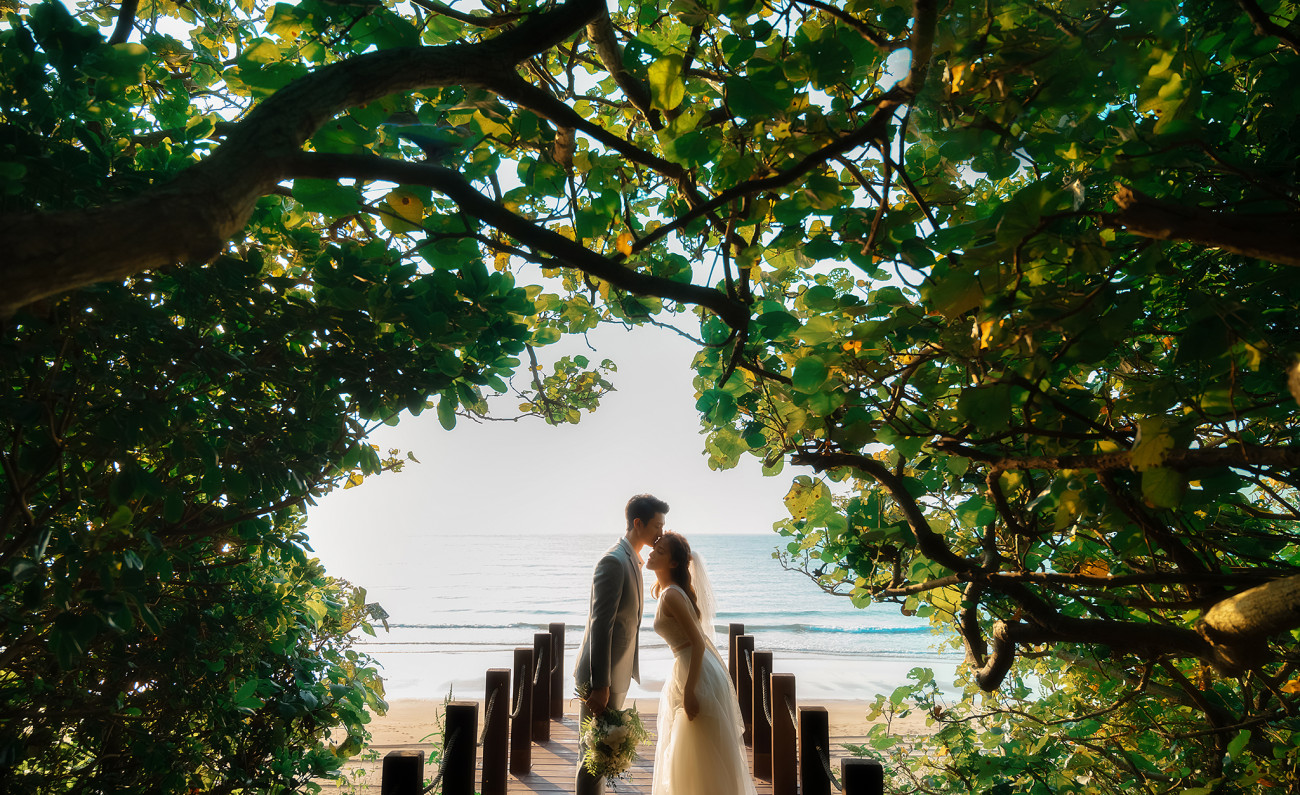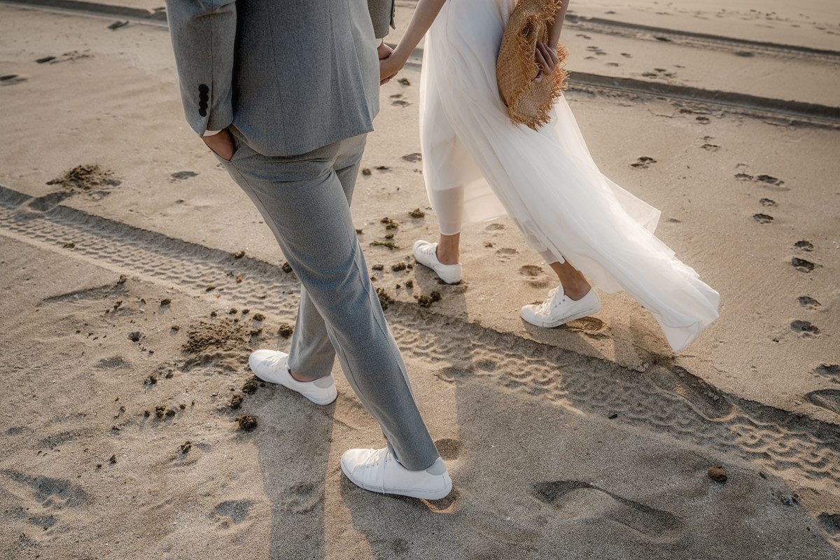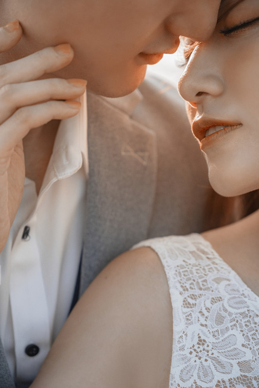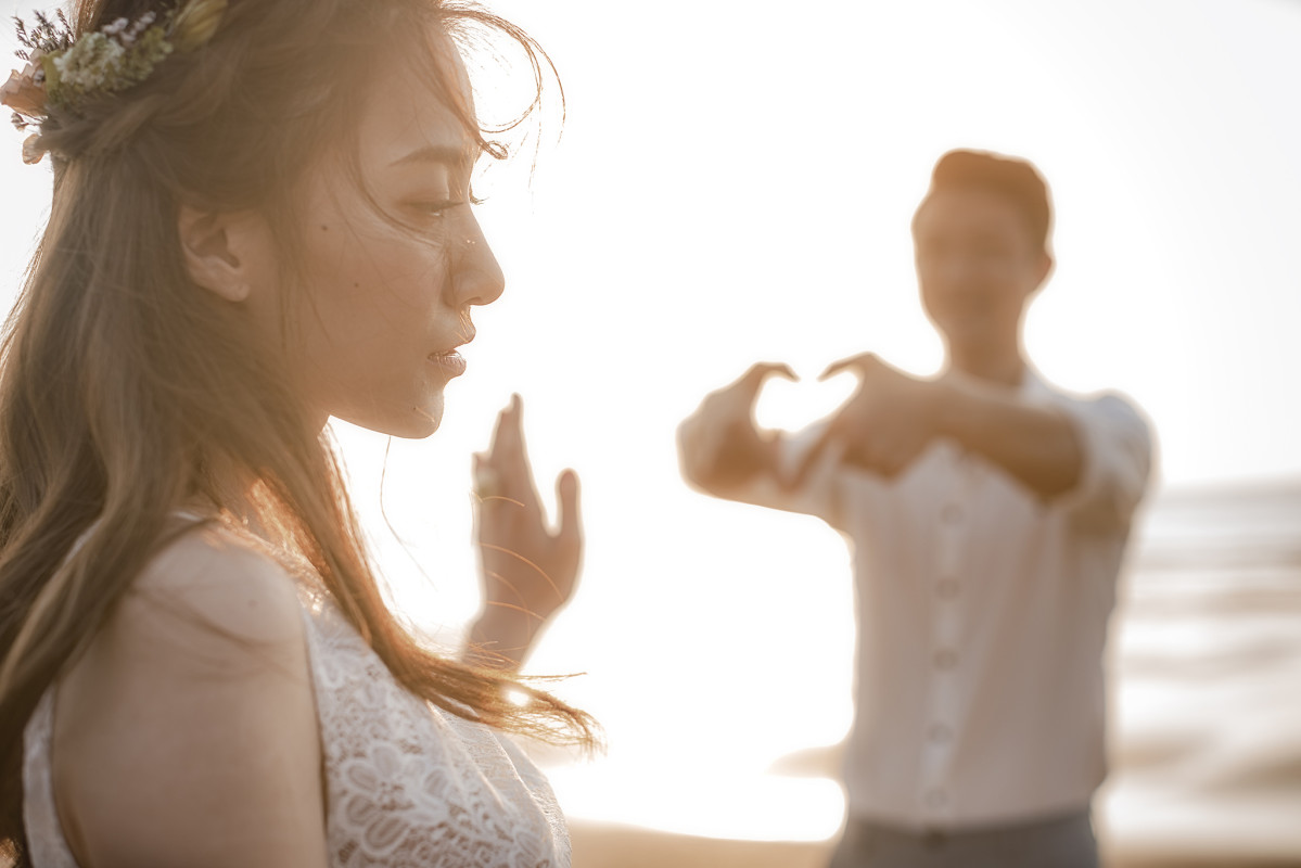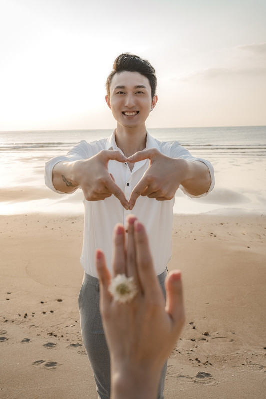 這組漫步沙灘的海邊婚紗照宛如浪漫電影場景般夢幻。夕陽的餘暉照映在沙灘上,新人牽手、擁抱、自在地漫步在沙灘上,享受著這一刻的甜蜜時光。輕婚紗隨風飄揚,柔和的陽光勾勒出曼妙的身影,散發出一種詩意的浪漫。每一步都在沙灘上刻畫出了愛情的足跡,將那份心靈深處的悸動定格成最浪漫的海邊婚紗照。